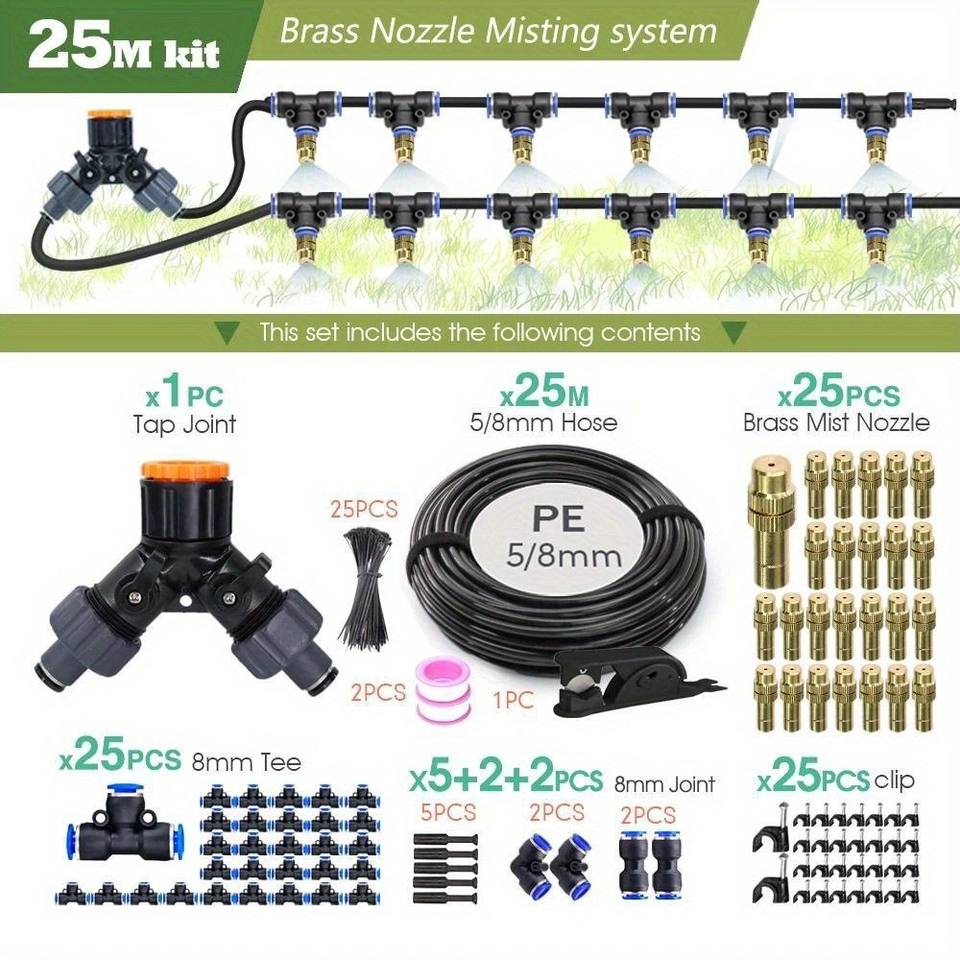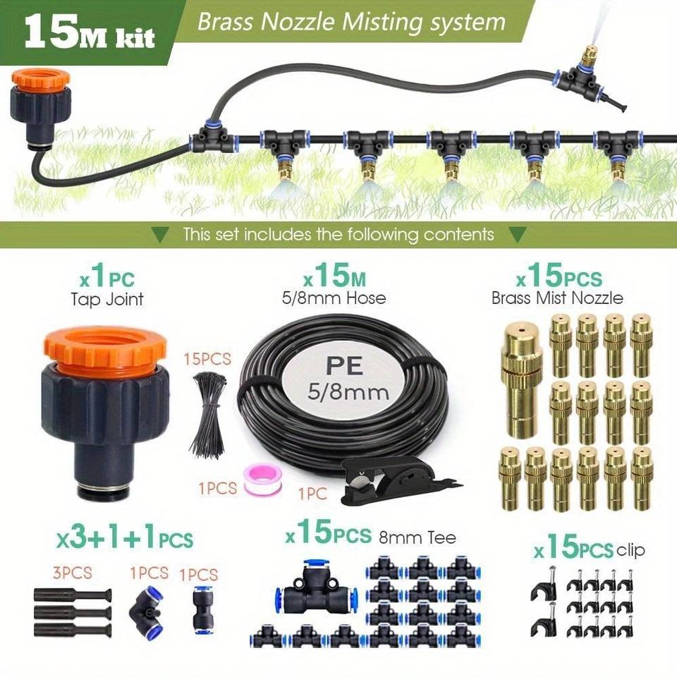 Système de brumisation Xiuning Horticulture avec buses en laiton, kit 20 m avec tuyau de 5/8 mm et 20 buses pour refroidissement et humidification