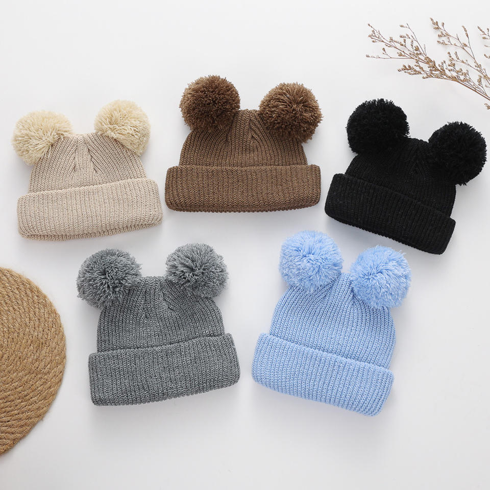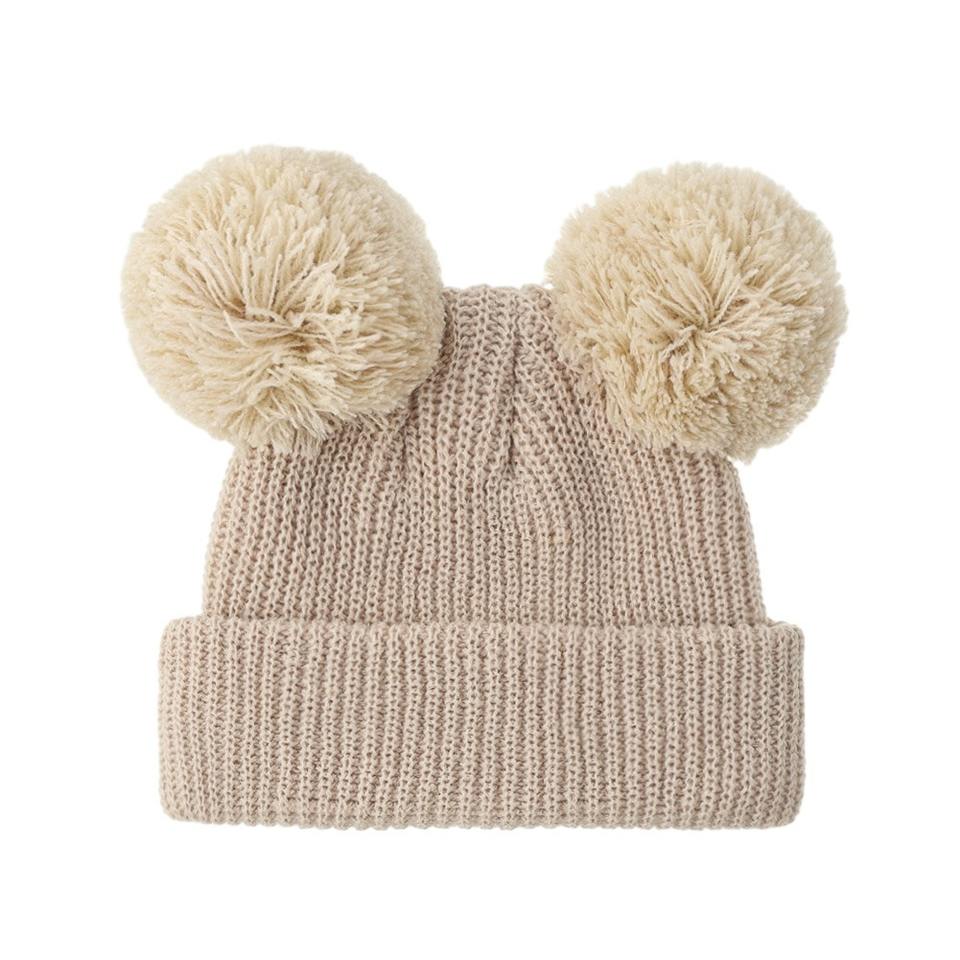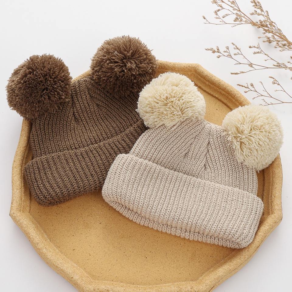 Chapeau bébé double pompon Xiximi pour filles, automne hiver, chapeaux tricotés chauds pour garçons, épaissir, nouveau-né, bébés, accessoires