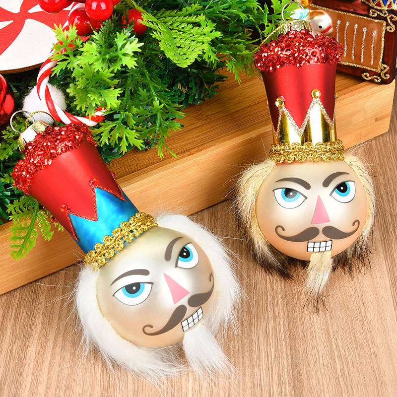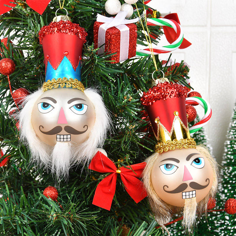 Décoration de Noël artisanale en verre peint en forme de Père Noël Casse-Noisette, finition brillante, pendentif pour arbre de Noël, décoration de fête