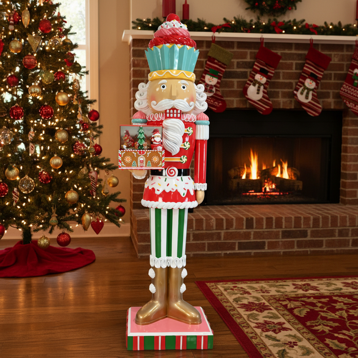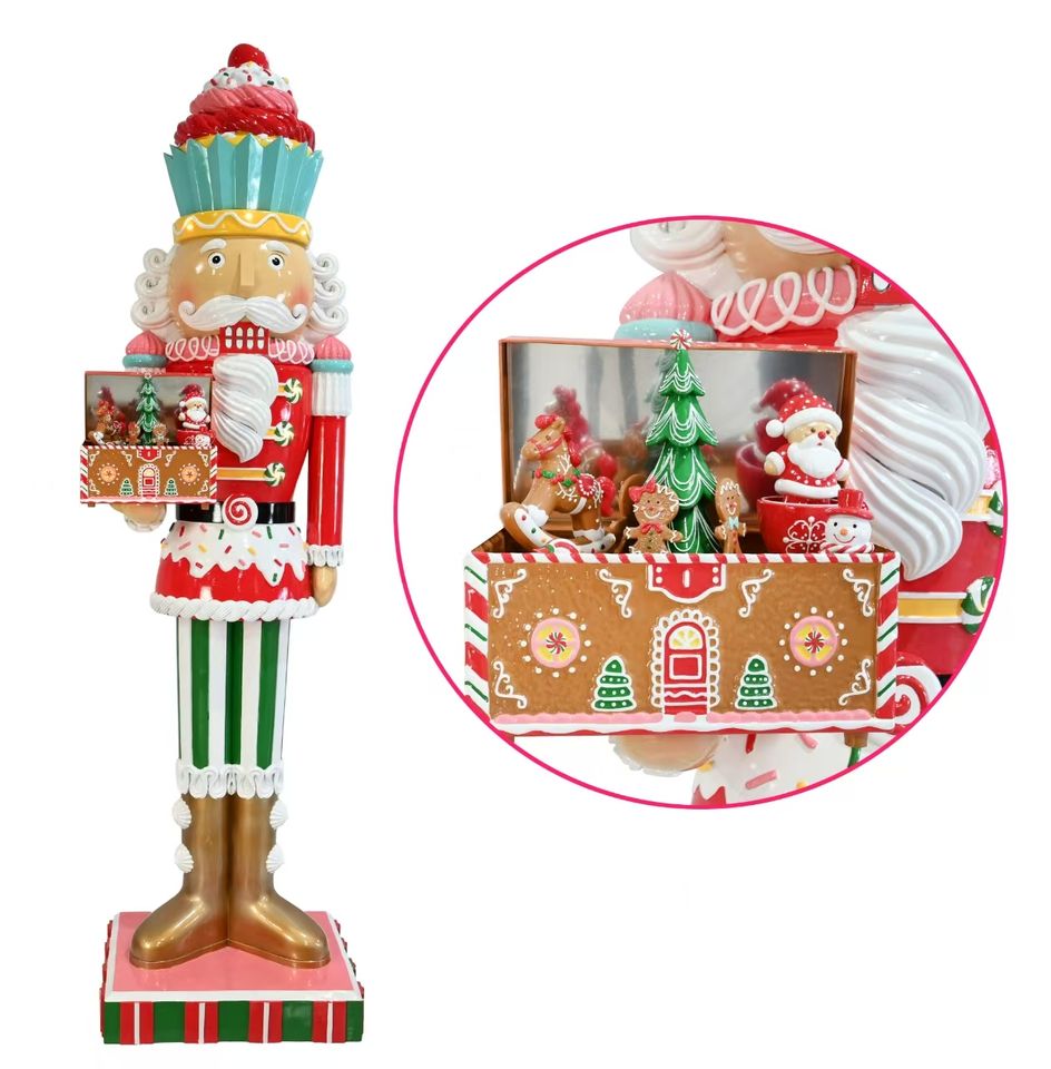 Xmas Seasonal Decor Large Life Size 6ft Musical Fiberglass Resin Mult Led Christmas Nutcracker with 8 Song Music