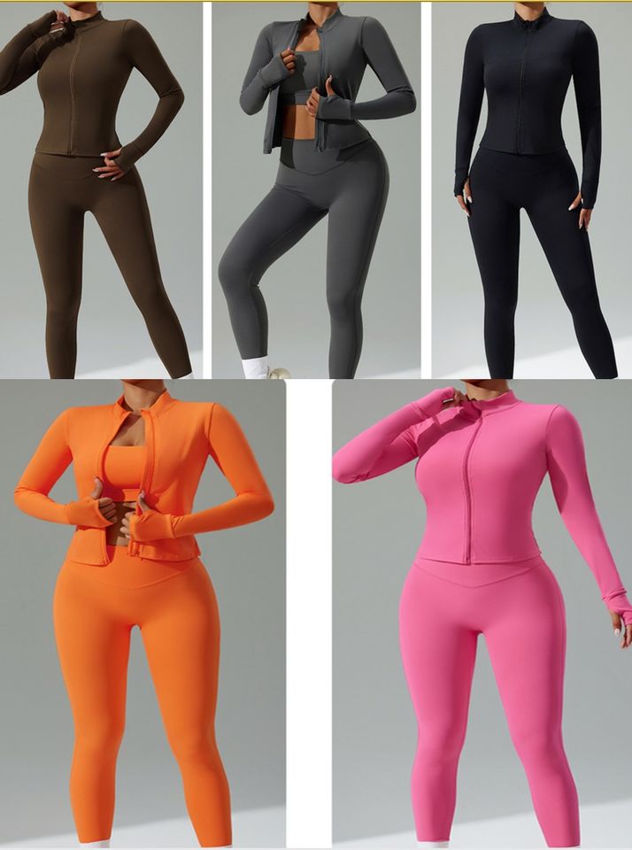 Xs Xl Orange Polyamide Legging Deux Pièces Femmes Veste Ensemble Nylon Survêtement pour Femmes Active Training Jogging Sports Yoga Wear