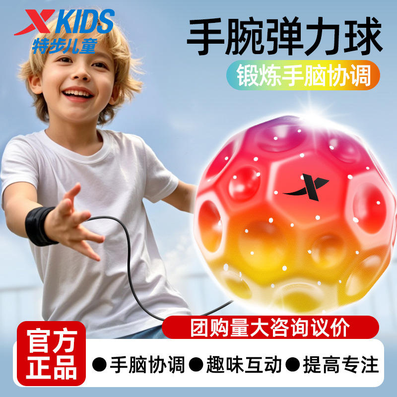 Balle élastique pour poignet Xtep avec corde, 80g, matériau PP, rebond élevé, pour l'interaction parent-enfant, équipement d'entraînement