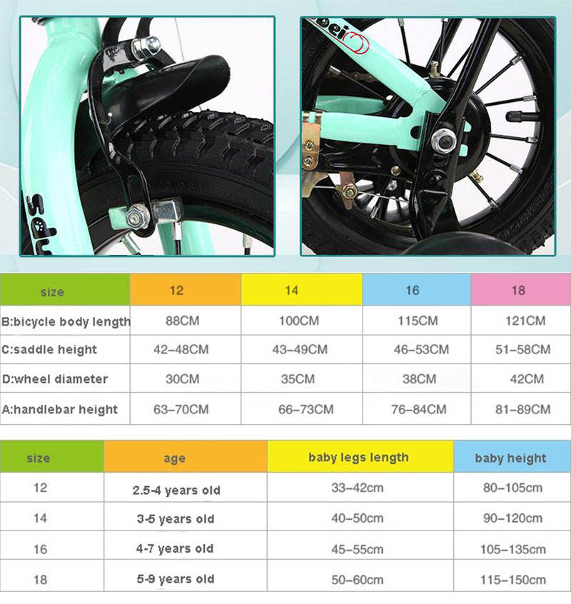 Type de roue:12 14 16 18 20 avec roue à rayons