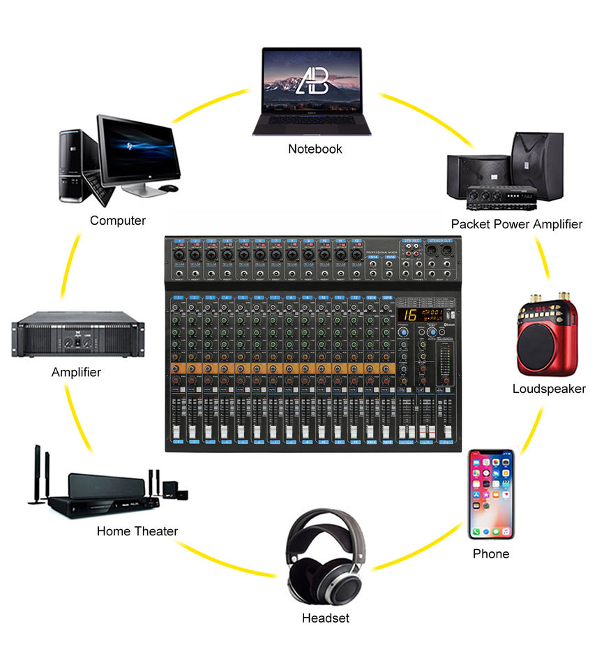 Nom du produit:Nouveau mixeur audio numérique professionnel 16 canaux pour musique.