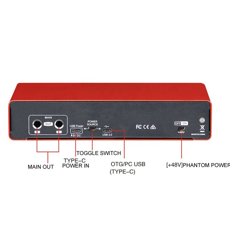 Interface audio haute fidélité professionnelle Xtuga C-22 rouge pour l'enregistrement de guitare en studio, boîtier tout métal, carte son extrêmement basse