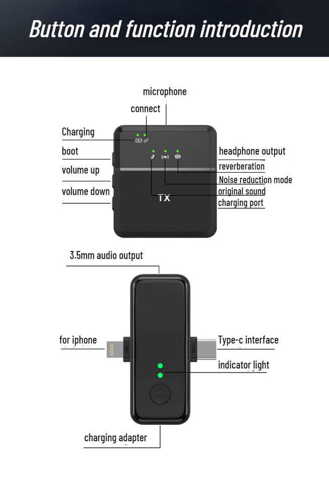 Microphone Lavalier sans Fil Portable Xtuga S31 2,4 GHz 3,5 mm Type-C IOS 3-en-1 pour Vlogging sur YouTube