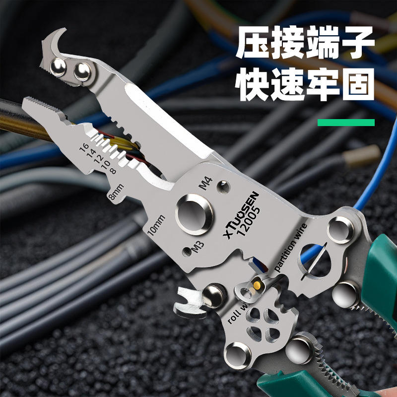 Dénudeur de fils pliable Xtuosen 12005, outil multifonctionnel pour électricien, acier inoxydable, acier au carbone, qualité industrielle