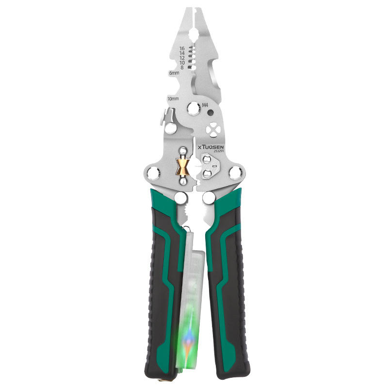 Pince multifonction Xtuosen 1 pouce de largeur de mâchoire en acier au chrome-vanadium, dénudeur de fils, outil d'électricien avec testeur de tension