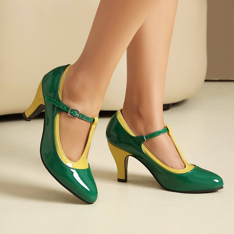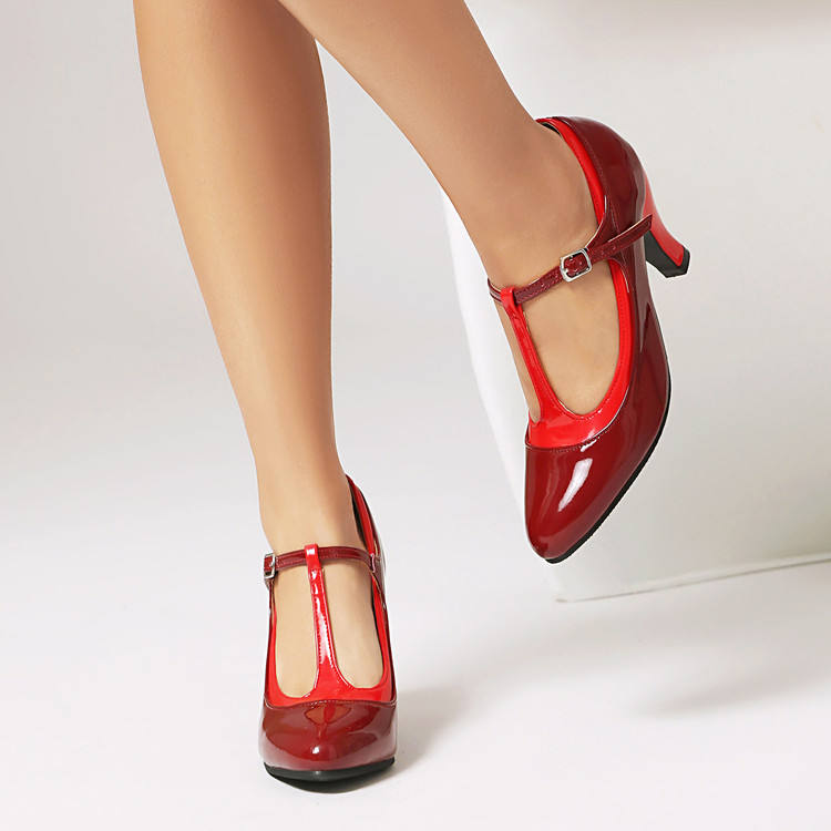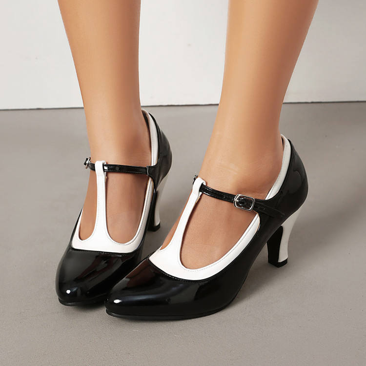 Chaussures pour femmes Xuanhui, best-seller, à bout rond fantaisie, en cuir verni, avec bride en T, confortables, style coréen, talons fins de 8 cm