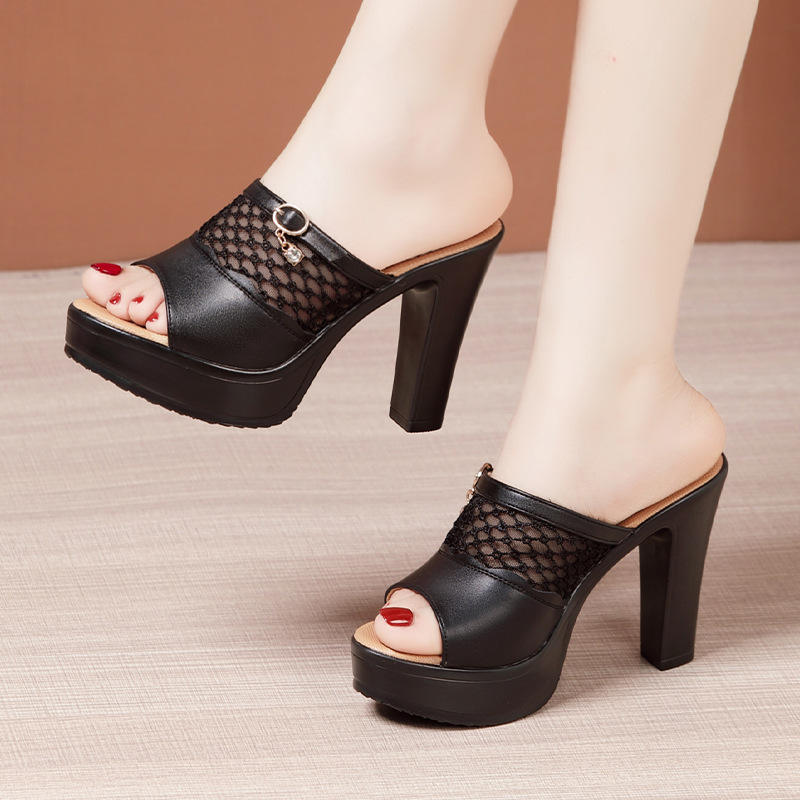 Xuanhui Nouvelles Sandales d'Été à Talons Hauts de 8 cm en Maille Creuse pour Femmes et Dames