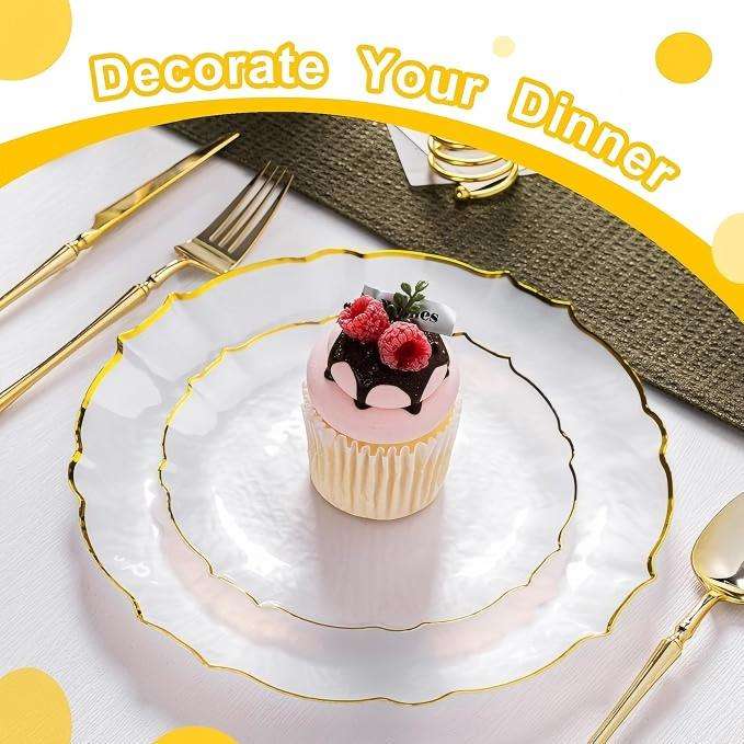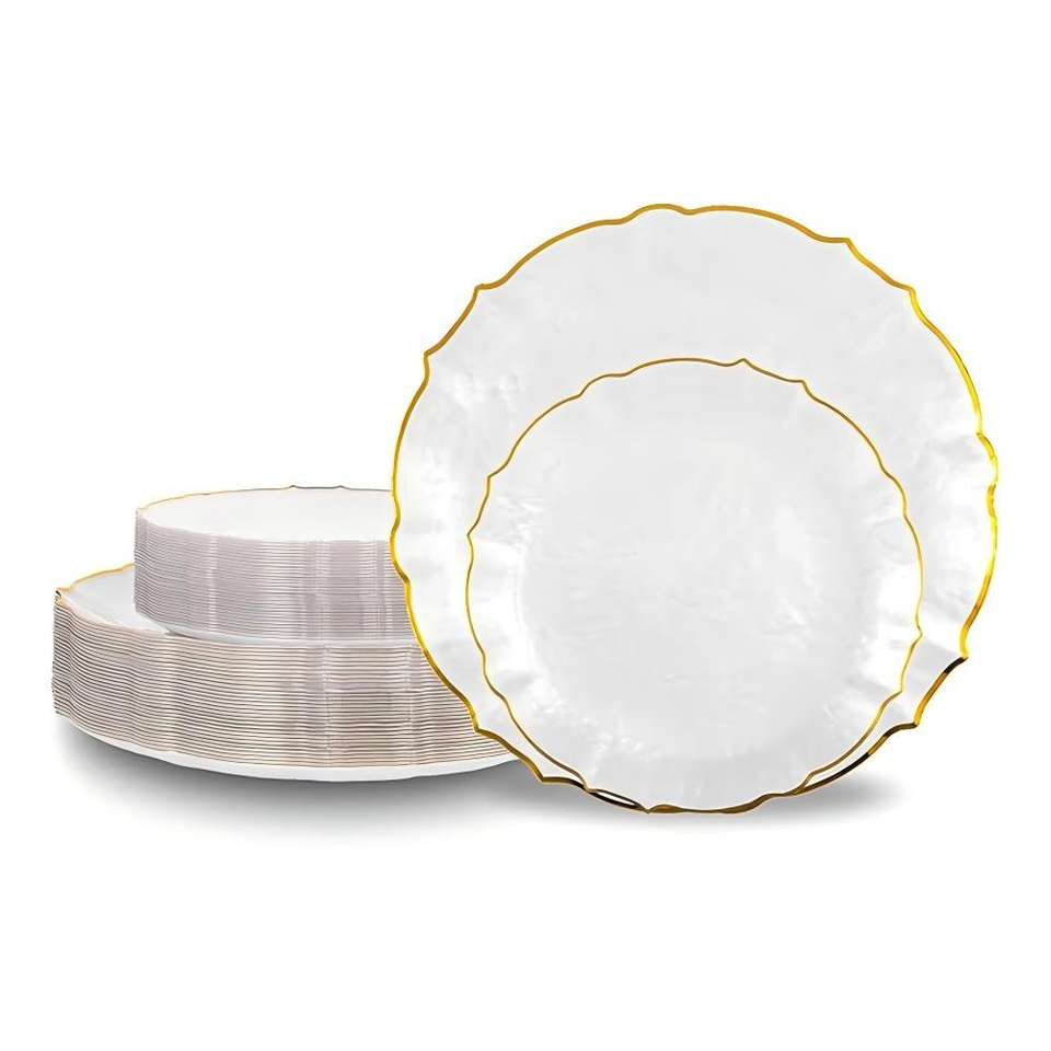Xueli Assiettes en dentelle en plastique de couleur personnalisables avec bords garnis or/argent Vaisselle décorative élégante pour les fêtes de mariage