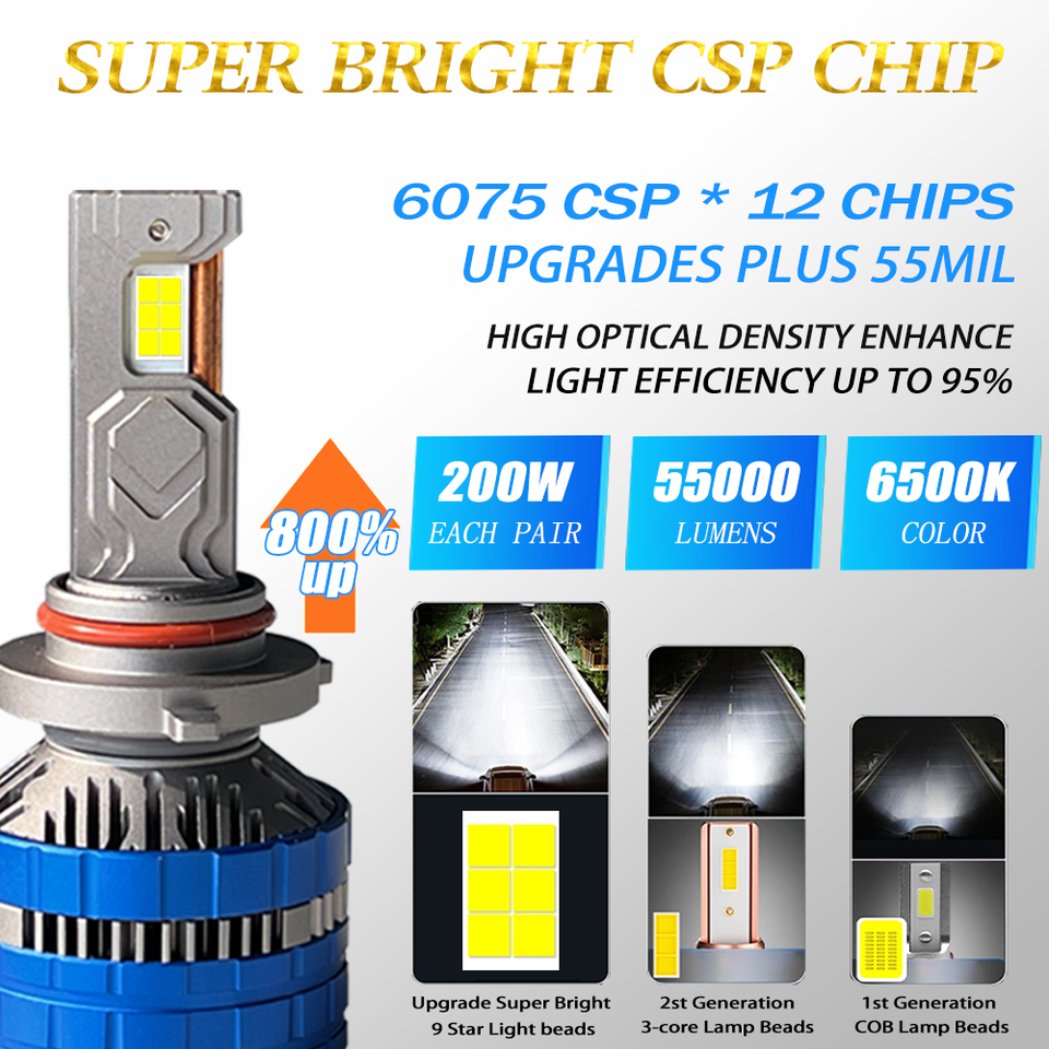 Xview Auto Accessoires de voiture Lumière LED H4 Phare LED de voiture H4 Haute puissance 200w 55000lm H4 Ampoule de phare LED