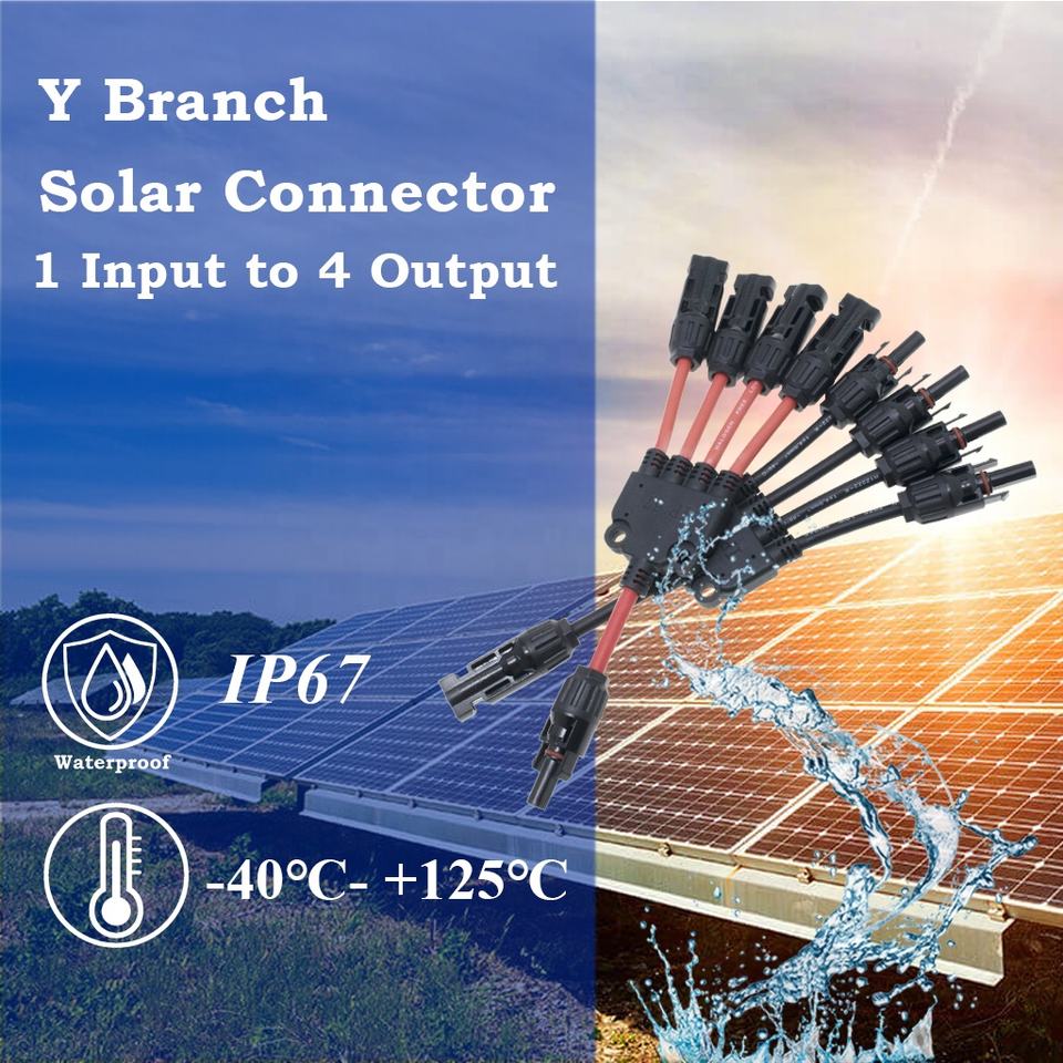 IP67 étanche rouge/noir Y branche connecteurs solaires PVC isolé contacts en cuivre pur 0.3M fil 1 mâle 4 femelle 1 femelle 4 mâle