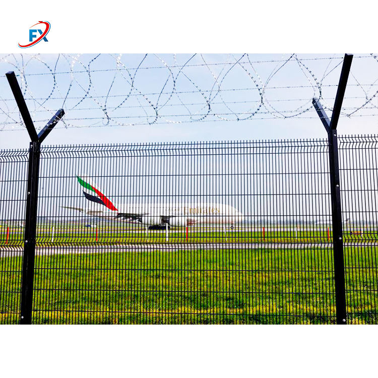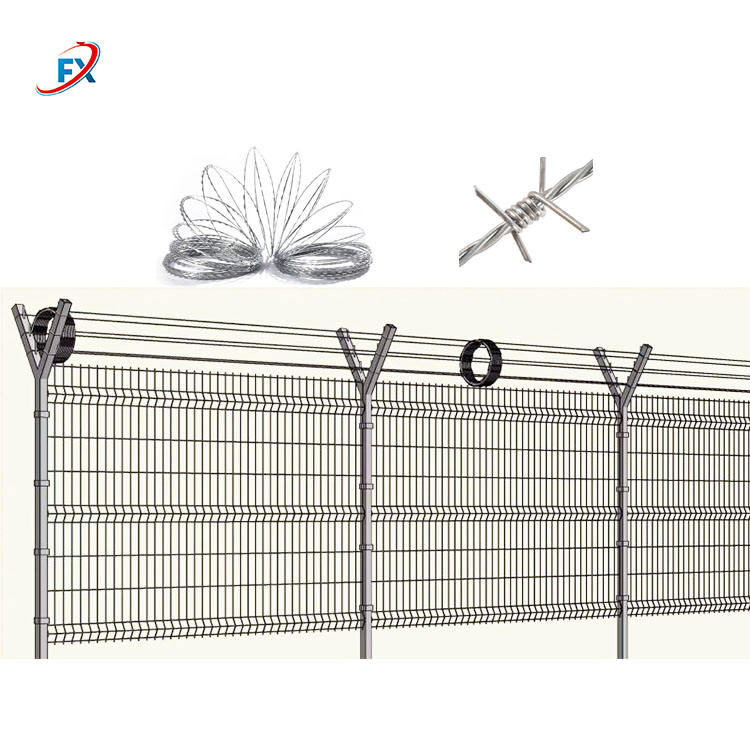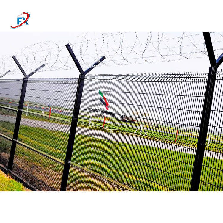 Panneau de clôture d'aéroport anti-escalade en PVC courbé en 3D en forme de Y avec fil barbelé