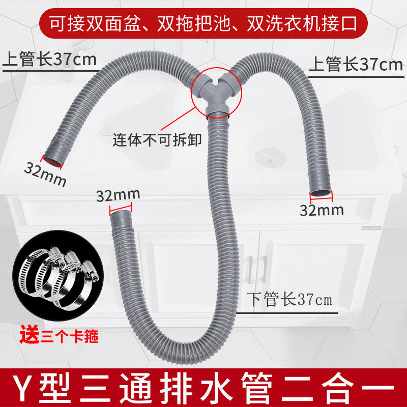 Tuyau de vidange en Y avec double sortie flexible pour lave-linge, évier, bac à légumes, tête filetée étendue anti-odeurs