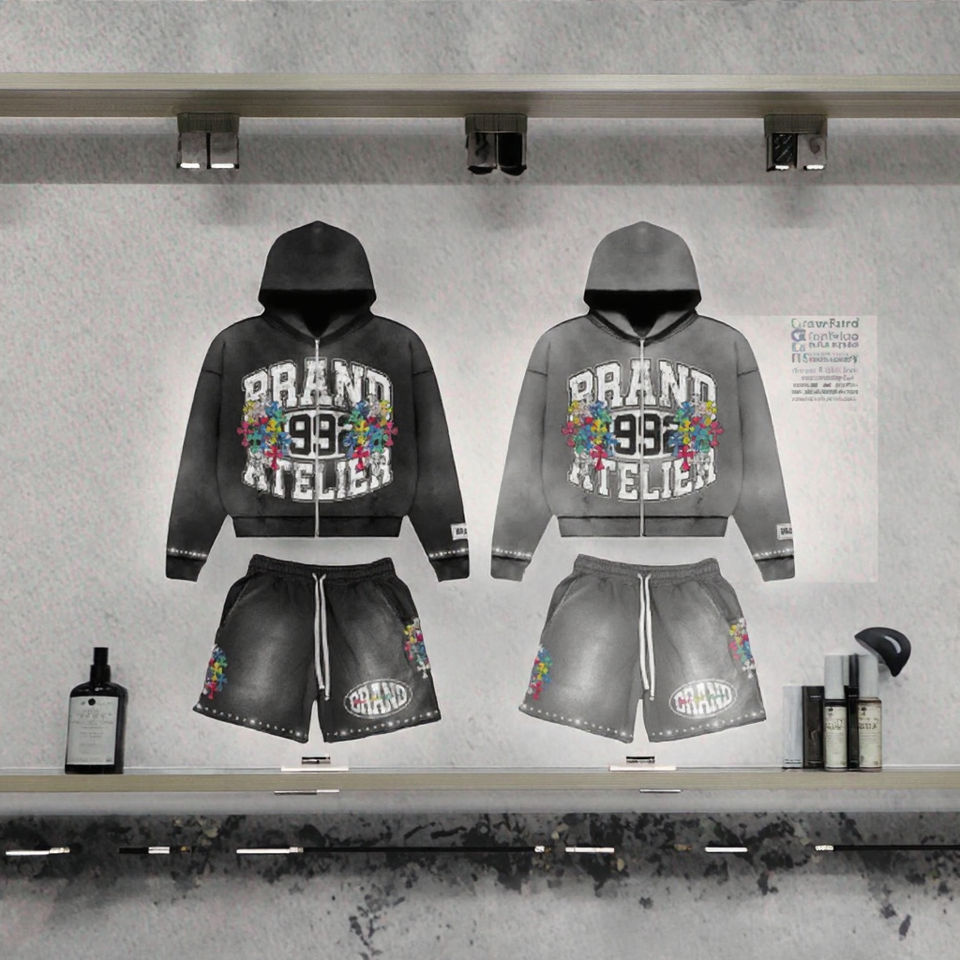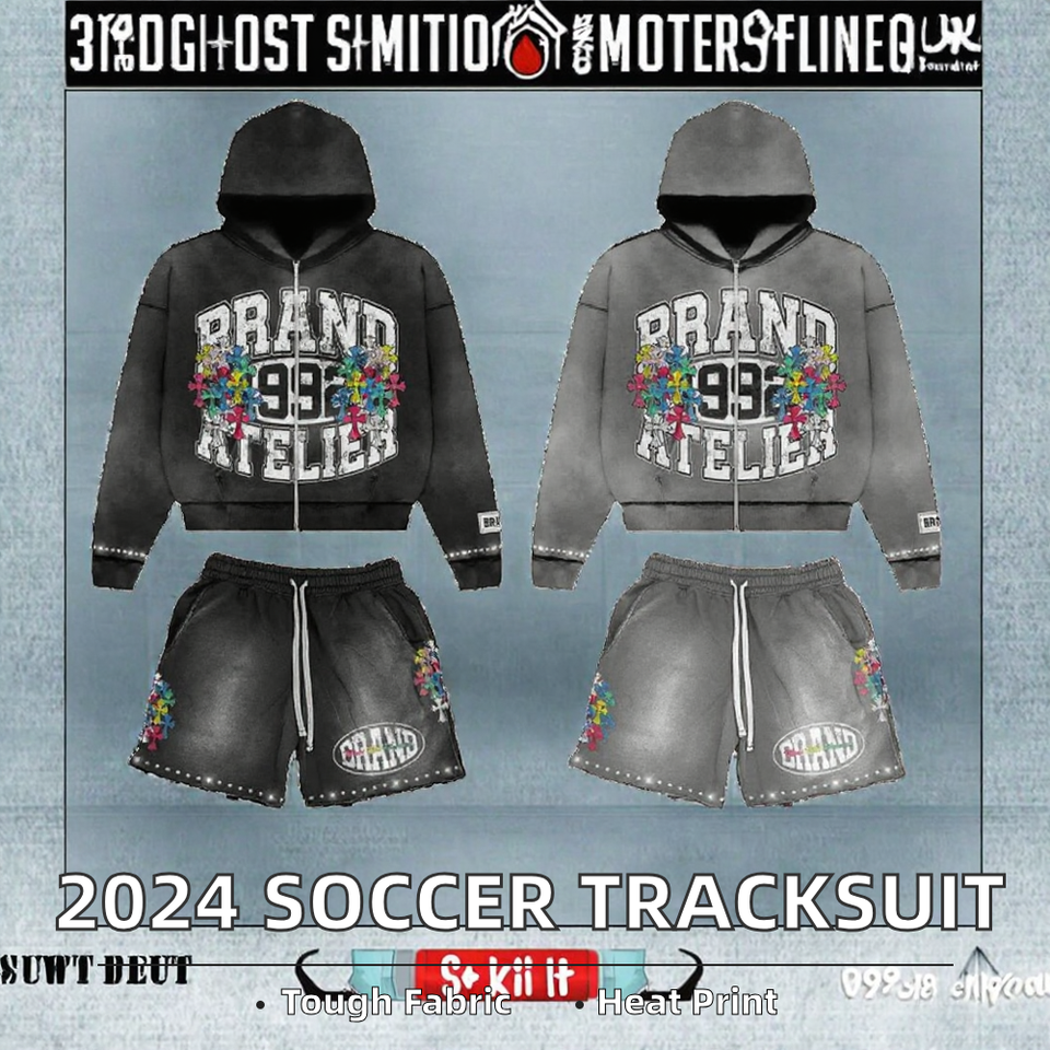Survêtement Y2K Acid Wash Streetcore pour enfants et adultes, style rétro grunge, surdimensionné, coordonné, hip-hop, broderie personnalisée pour les nouvelles marques
