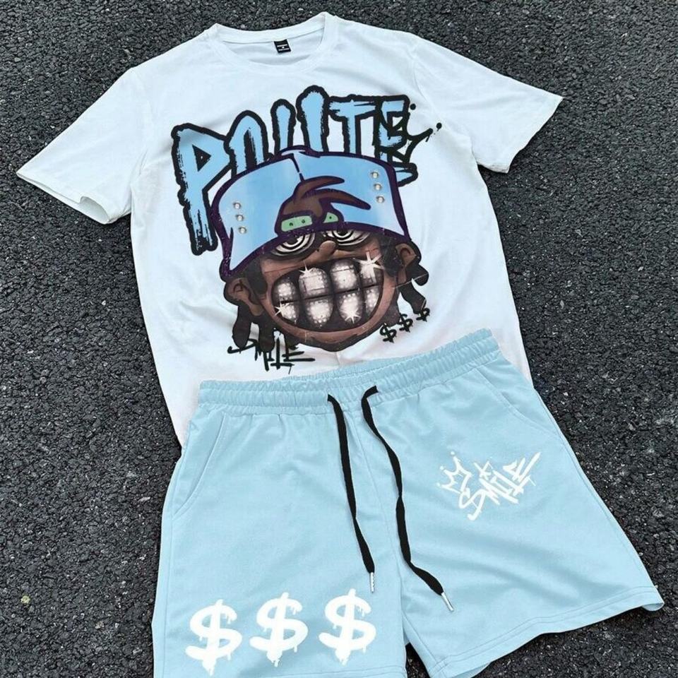 Nouveautés Y2K, t-shirt personnalisé avec impression sérigraphique, t-shirt graphique en coton hip-hop et short, ensemble deux pièces