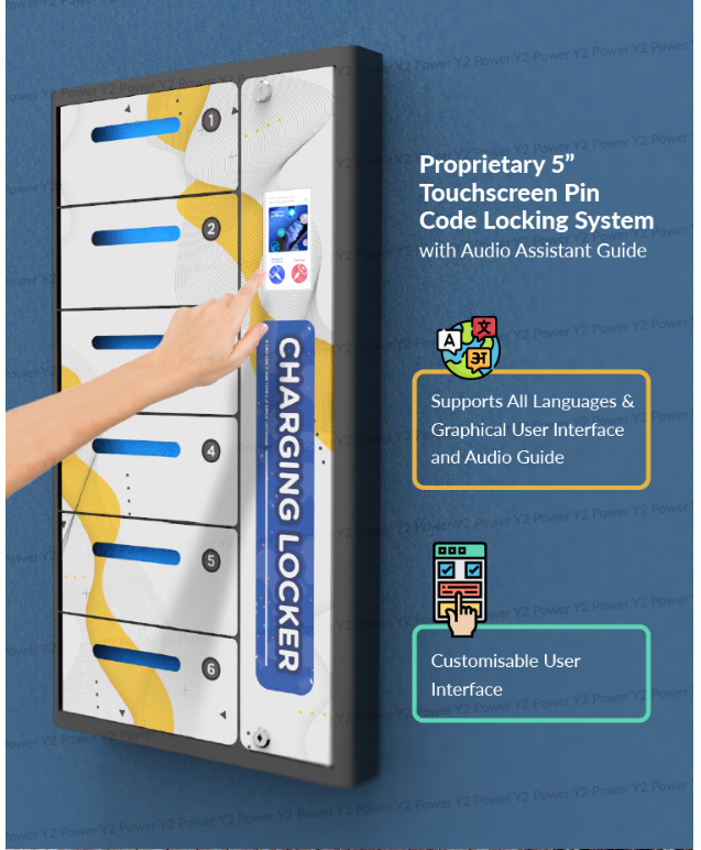 Y2Power ZEN Casier de recharge mobile étanche pour extérieur avec écran tactile de 5 pouces, station de recharge commerciale de haute technologie pour smartphone