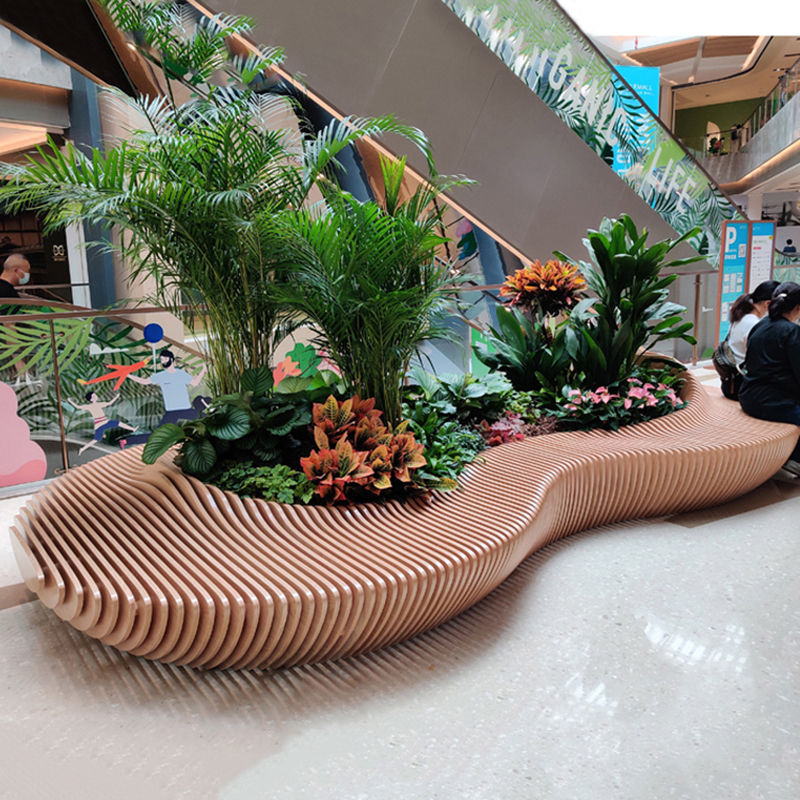 Chaises de jardin en bois de chêne tranché artistique Y500 et fibre de verre résistantes aux UV, taille personnalisée, pour hôpital et parc