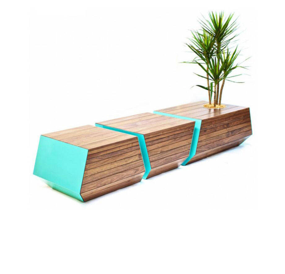 Y672 sections banc de grain de bois doré pot de fleurs centre commercial moderne jardin lieu de repos canapé d'attente luxe art chaises meubles