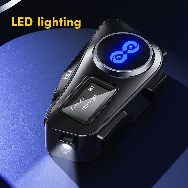 Casque de moto Bluetooth 5.1 Y6X, étanche, radio FM, lampe de poche, interphone pour 4 motards, partage de musique sur 1000 m