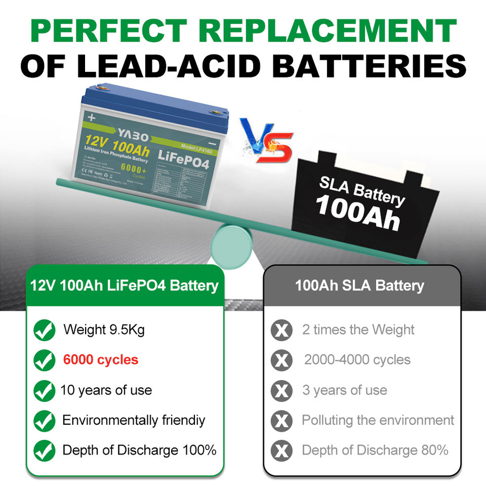 Usine YABO Batterie LiFePO4 3.2V 12V 24V 36V 48V 24Ah 36Ah 50Ah 60Ah 100Ah 150Ah 200Ah 300Ah Batterie lithium-ion à cycle profond 12V