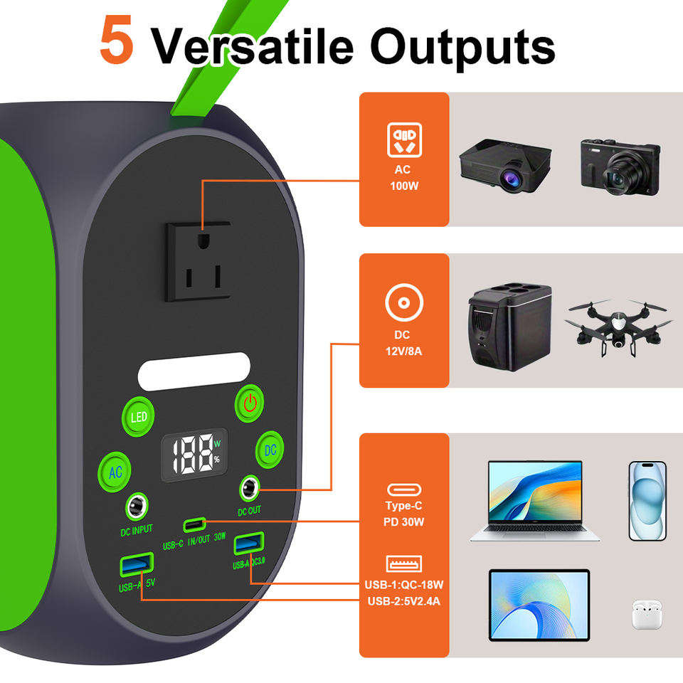 YABO Nouvelle Arrivée Station d'Énergie Solaire Portable 120W Onde Sinusoïdale Pure Sorties AC/DC Batteries Externes