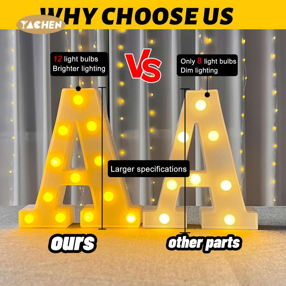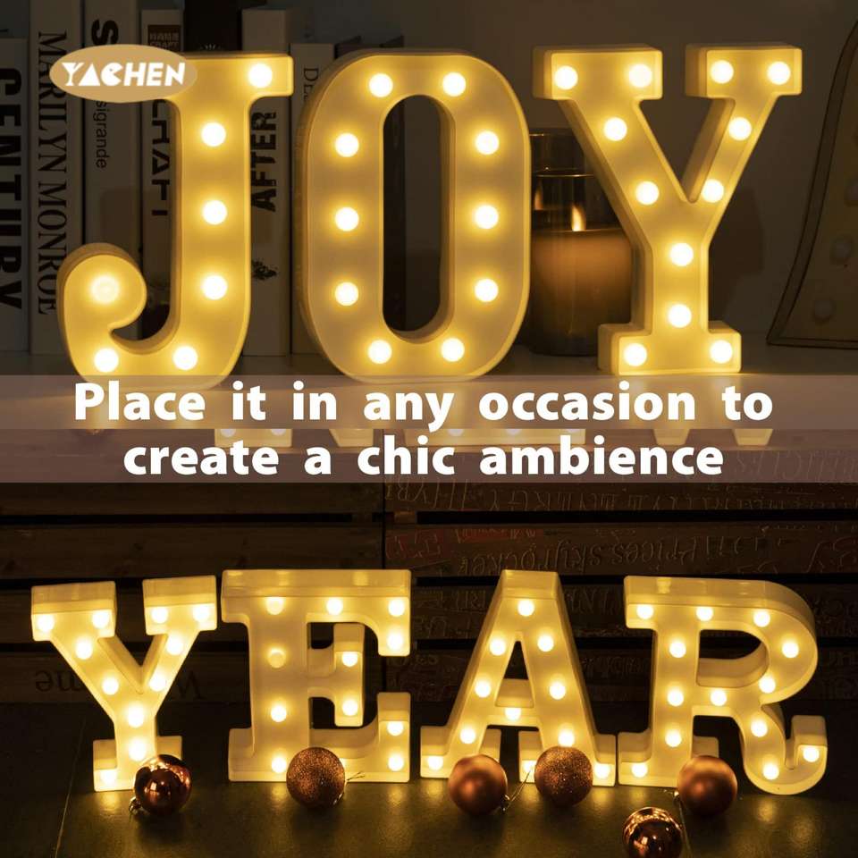Lumières de marquise LED YACHEN, alimentées par batterie, 26 lettres de l'alphabet et 10 chiffres, lettres lumineuses pour la décoration de la maison, des fêtes et des mariages