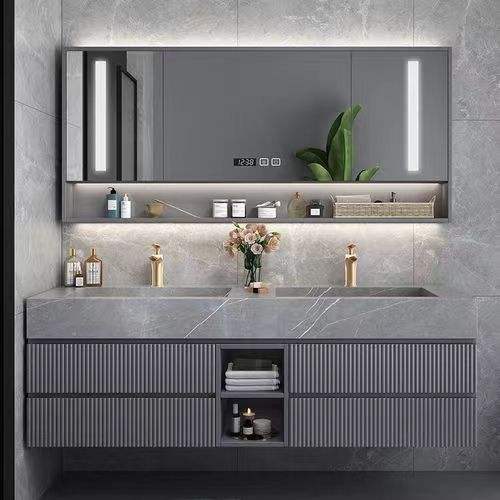 Meuble-lavabo sur mesure YALIG pour salle de bain, ensemble de salle de bain moderne, organisateur, meuble-lavabo flottant avec lavabo, meuble-lavabo de salle de bain pour le maquillage