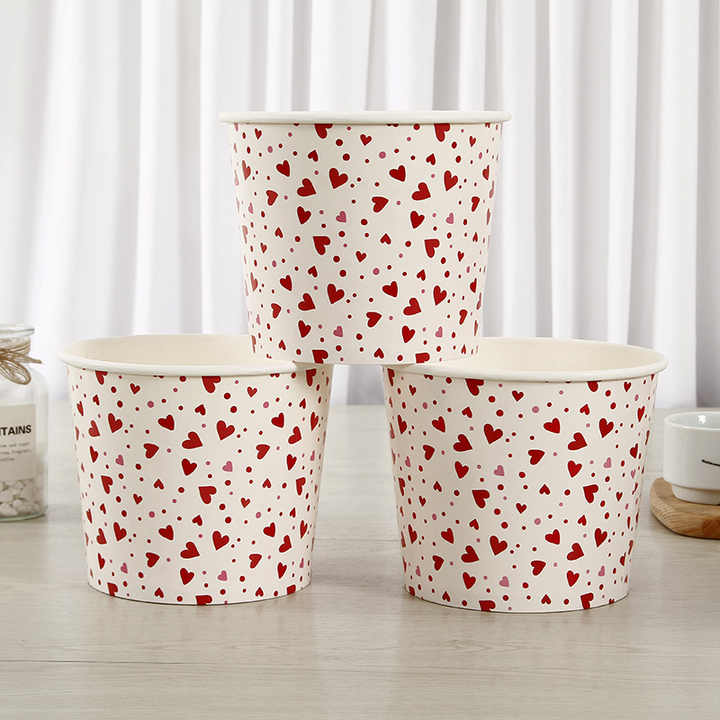 YBLPAK Seau à collation jetable avec logo cœur imprimé, emballage alimentaire, bac en papier OEM pour servir biscuits, chocolat, bonbons