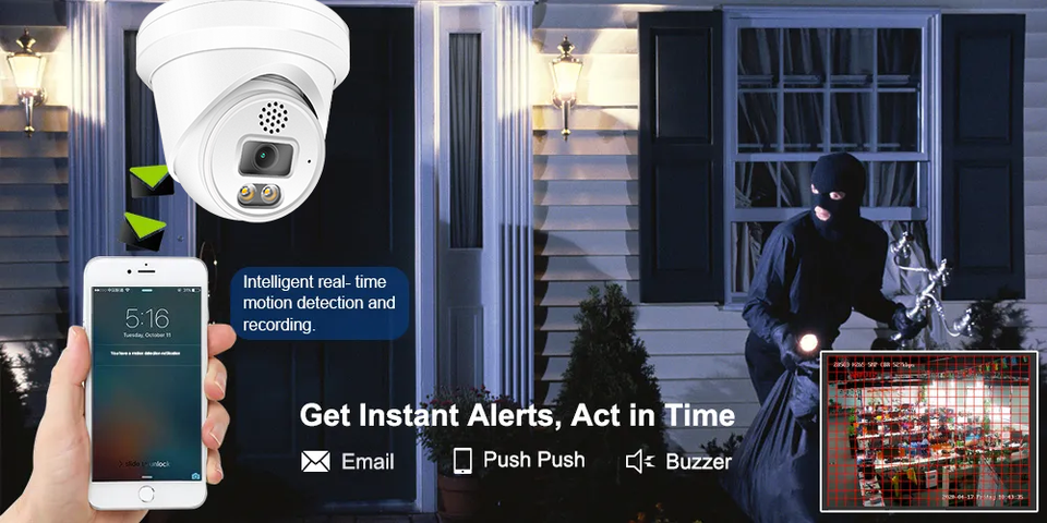 YCX 8MP Hik CCTV caméra de sécurité Vision nocturne rouge bleu lampe de poche alarme Audio bidirectionnel 2.8mm couleur POE tourelle CMOS nuage