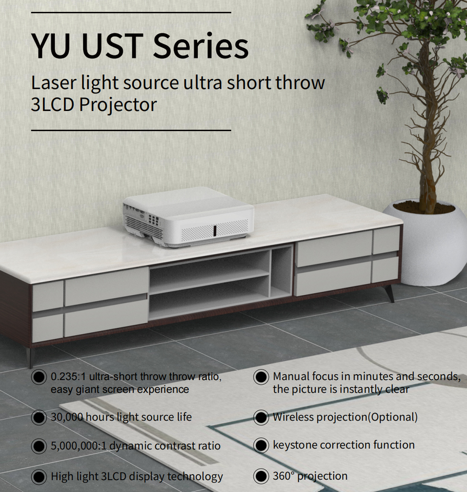 YDH-AYU385U 4K Laser Projector 5000 Lumens DLP Cinema 3D Video Home Theater Portable HIFI STEREO Pocketable