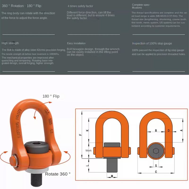 YDS Boulon à anneau de levage rotatif universel Rotation à 360 degrés Filetage M8-M64 Capacité de charge de 90 lb pour l'infrastructure de construction