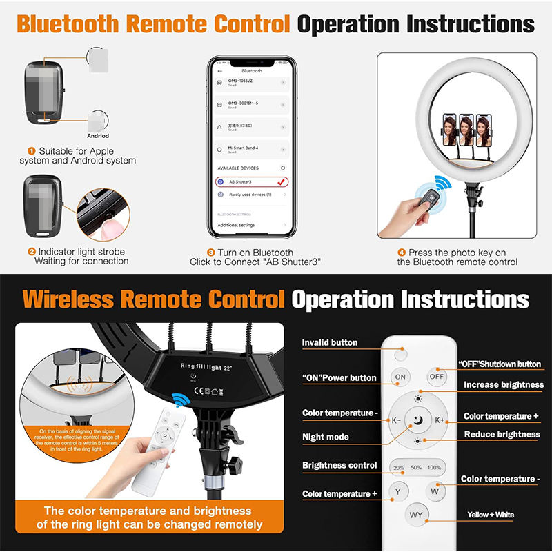 YEAH Professional 480 LED 22 pouces Ringlight 2700-7000K Dimmable RA80 56 cm 22 pouces Selfie Ring Light avec trépied, support pour téléphone