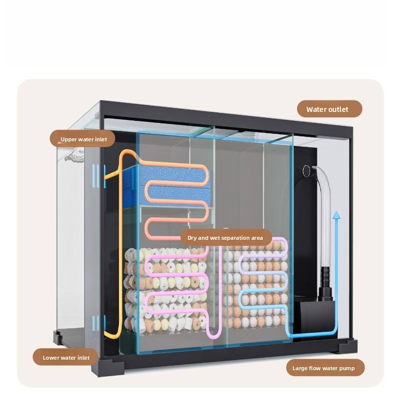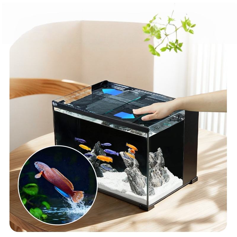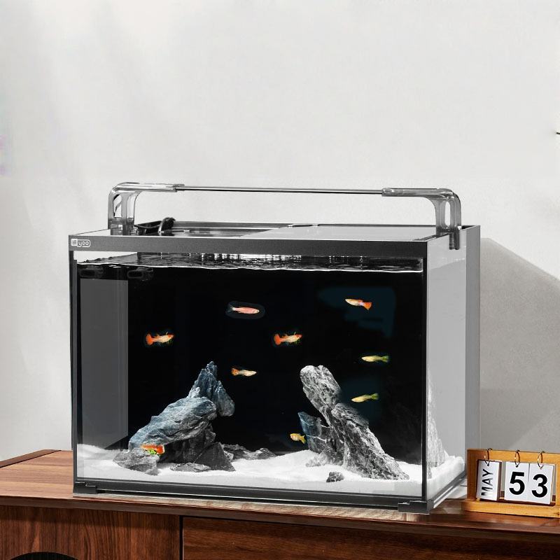 Aquarium YEE ultra-transparent à angle droit, filtration arrière silencieuse intégrée, aquarium écologique anti-saut pour la maison, la chambre et le bureau