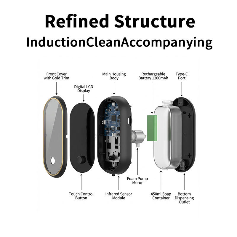 Distributeur de savon sans contact YEETE 450 ml avec écran numérique doré IPX5, 3 niveaux de mousse, infrarouge, USB-C pour la maison, la cuisine et la salle de bain