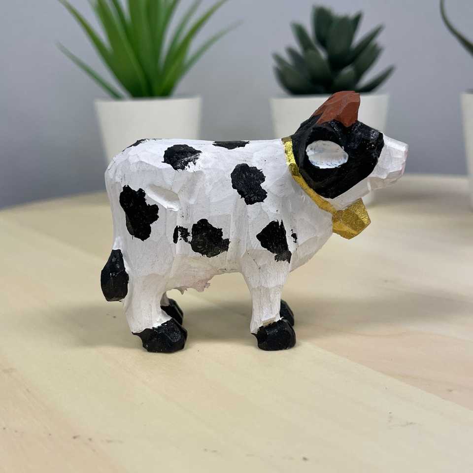 YEEYAYA Hand Carved 3\" Wood Sculpture Cow Figurine for Home Decor Christmas Gift or Room Decor with Farm Animals From Zoo