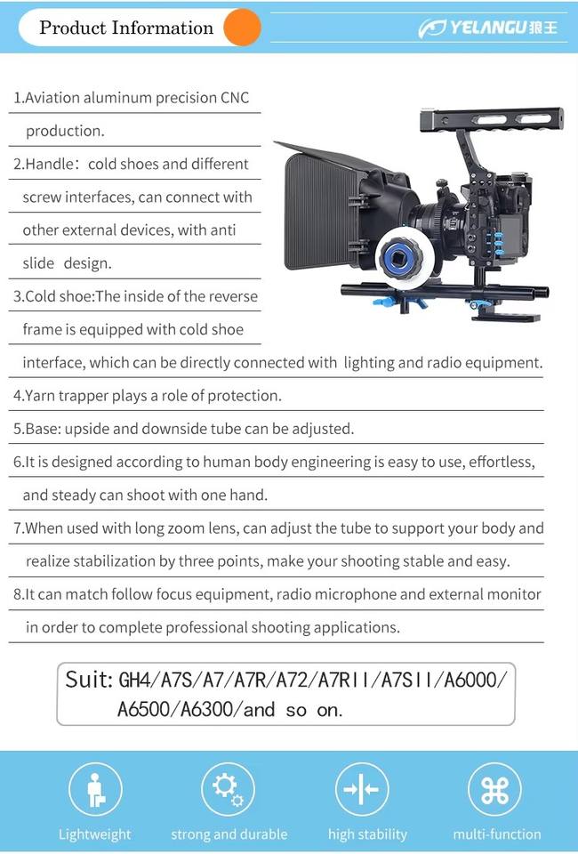 YELANGU C500Camera cage GH4Matte box adapté A7S/A7/A7R/A7RII/A7SII