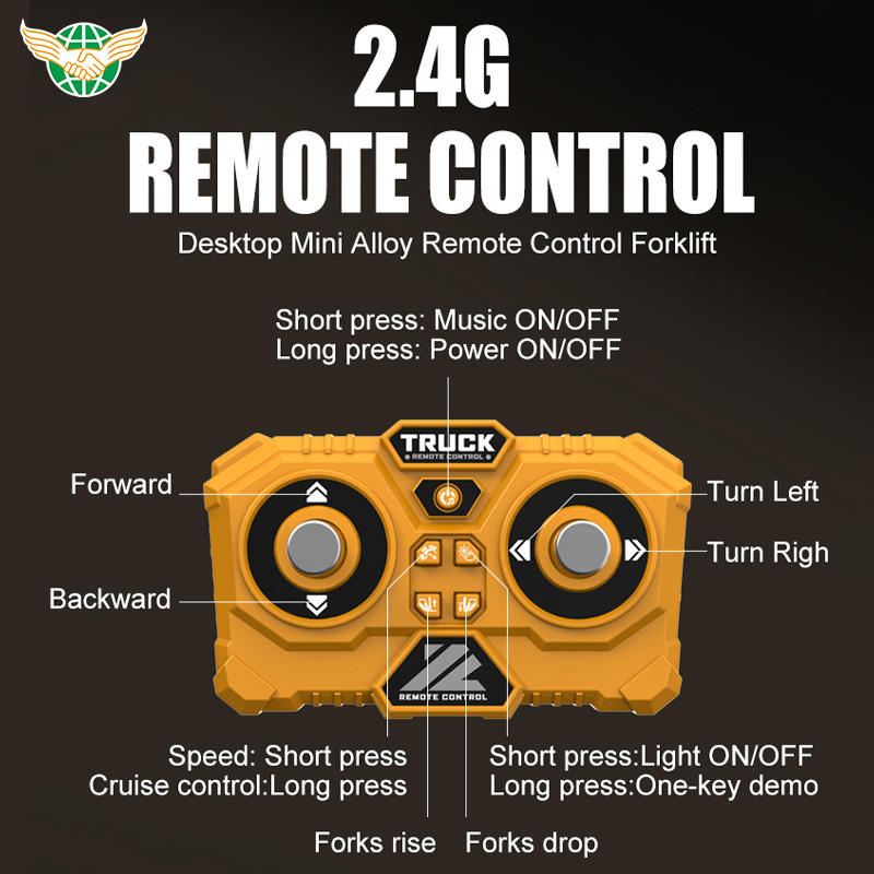 YF 1:64 Échelle Miniature de Chariot Élévateur à Fourche en Alliage Jouets pour Enfants Cadeaux Jouets 2.4Ghz Mini Chariot Élévateur à Fourche Électrique Télécommandé avec Remorque