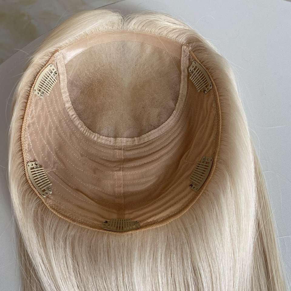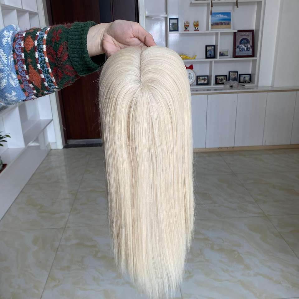 YF-2408 60 # Toupet en cheveux humains vierges russes, lisses, blonds, avec base mono, densité 150%, 9x9