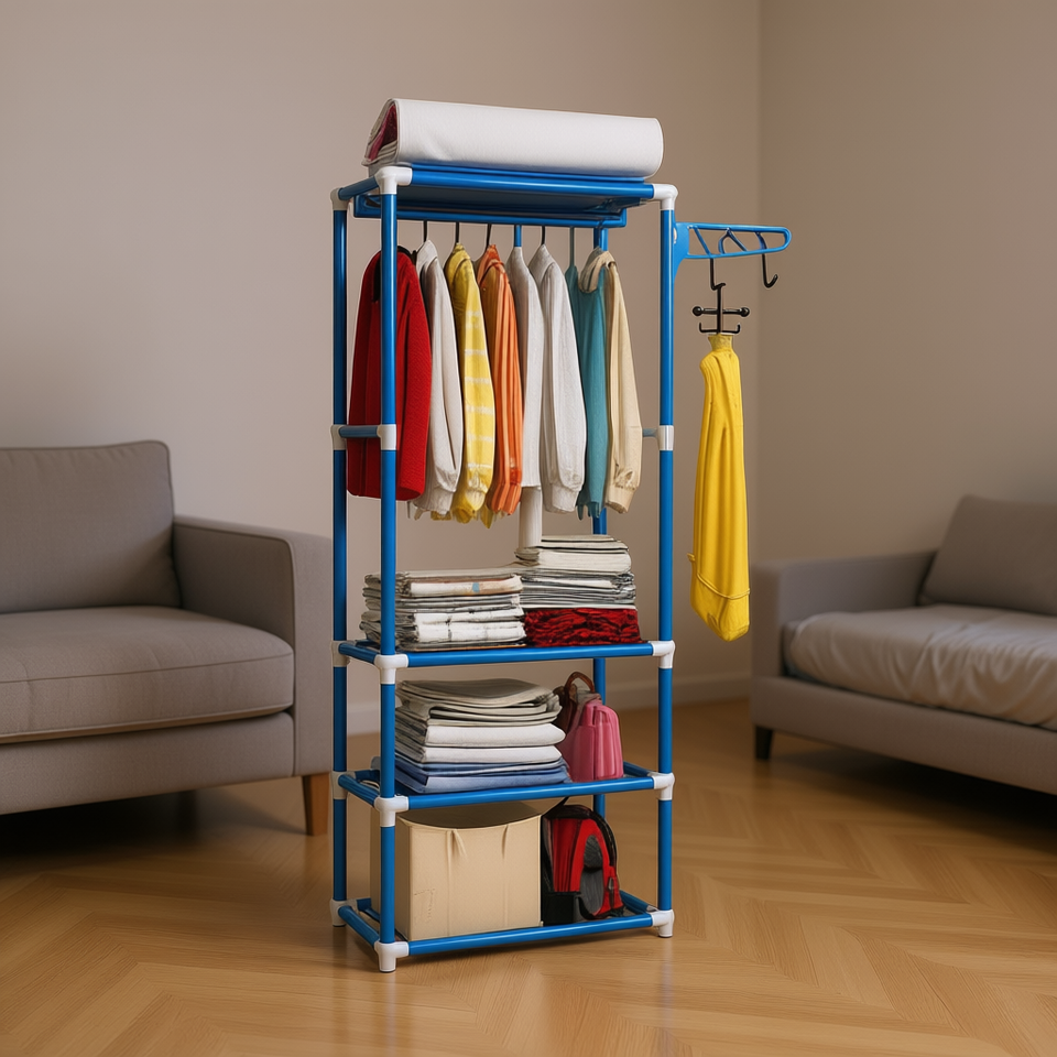 Porte-manteau sur pied On Teck Sa De Cv, tube peint 16 mm, 3 étagères, 6 crochets, durable, pour rangement domestique et chambre à coucher