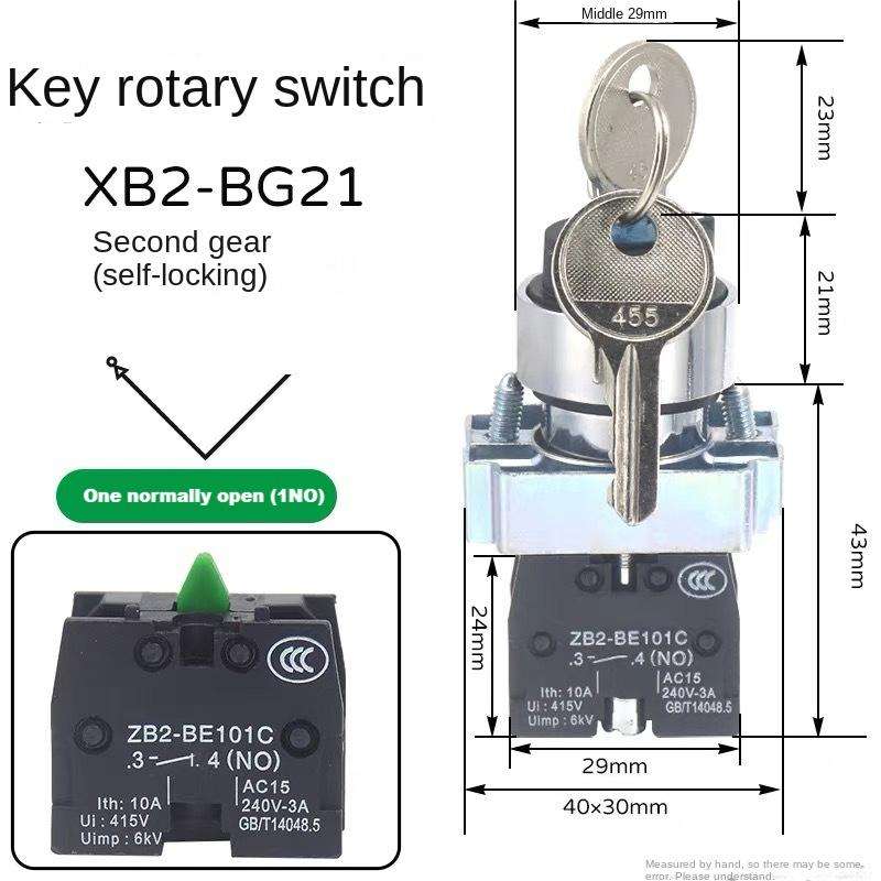 YHBS-XB2-R22ZK rotary switch with key, 22mm aperture, IP65, excluding shipping costs