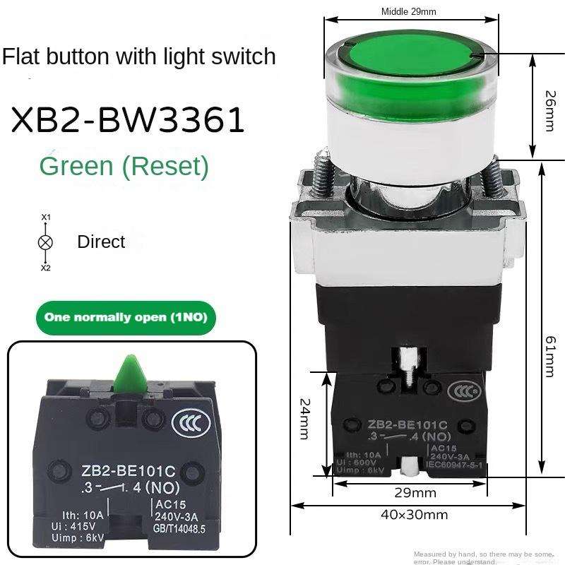 Interrupteur à bouton de réinitialisation automatique YHBS-XB2 avec indicateur, ouverture de 22 mm, IP65, livraison non incluse