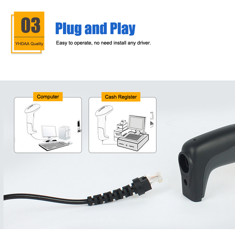 YHDAA Original Scanner De codes à barres filaire de haute qualité Lector De Codigo De Barra Application informatique en Stock