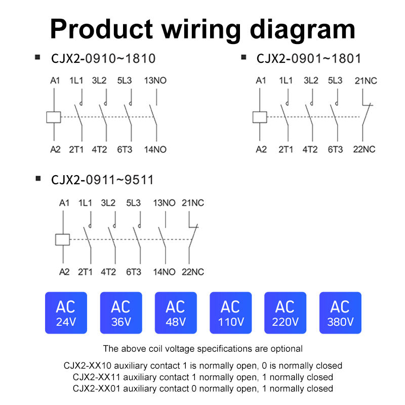 Contacteur triphasé AC YHKJ CJX2-1811 1211 2511 3211 6511 Triphasé 380V 110V