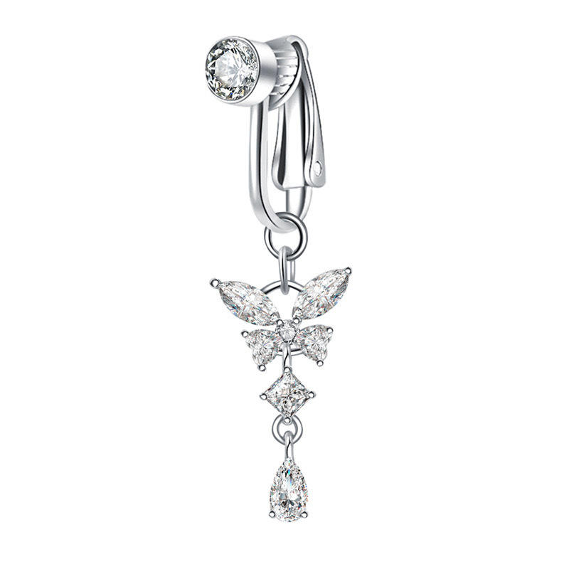 YICAI gros laiton incrustation zircon cubique Non Piercing ventre anneaux papillon Clip sur ventre nombril anneau