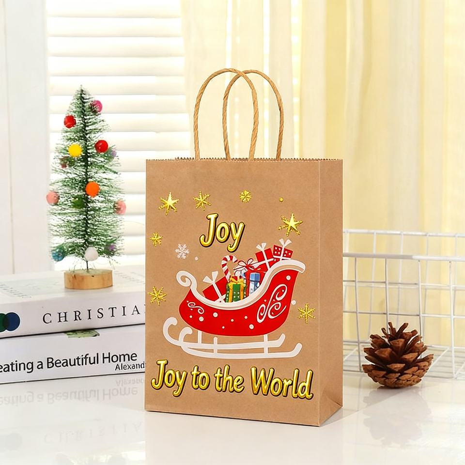 Sacs en papier kraft personnalisés YIHE, écologiques, pour l'emballage alimentaire, sachets debout, sacs cadeaux de Noël avec poignée en ruban