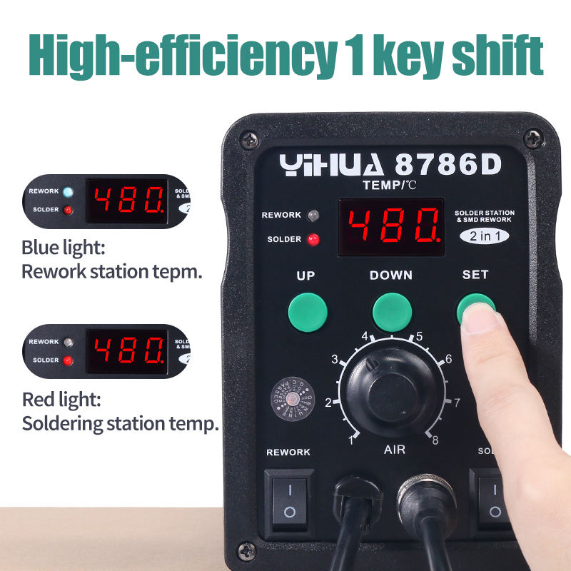 Station de soudage à air chaud YIHUA 8786D SMD 740W 2 en 1 avec affichage numérique, pistolet à air chaud et fer à souder