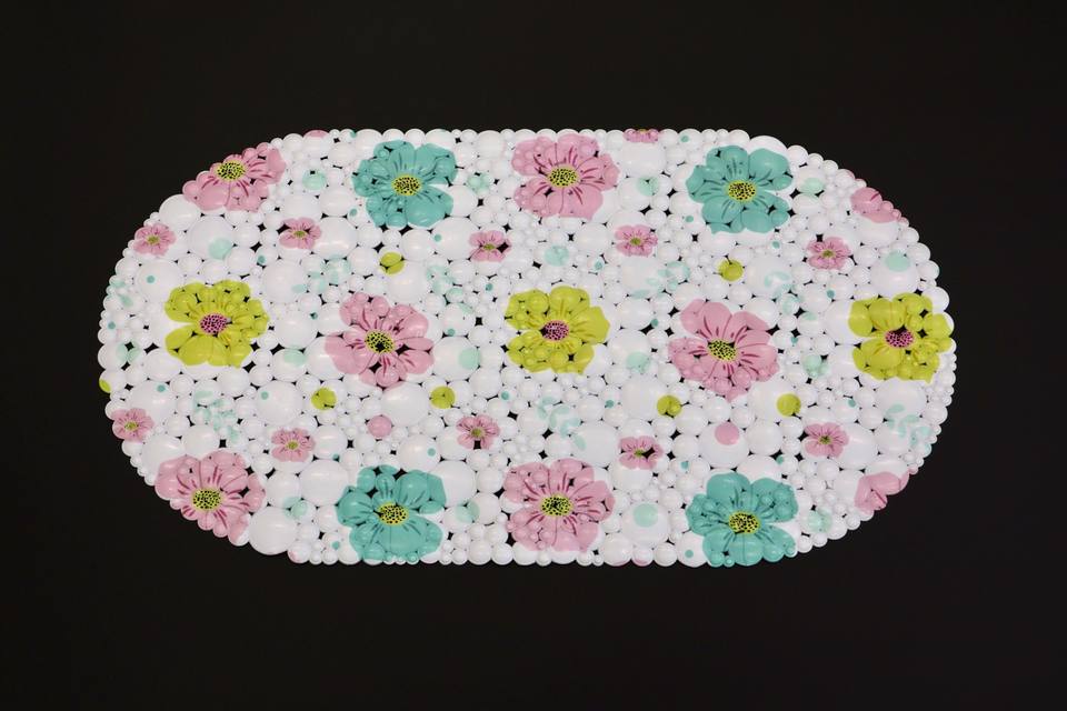 Nom du produit:Tapis de bain antidérapant en PVC avec trous de drainage, imprimé pour baignoire et douche.