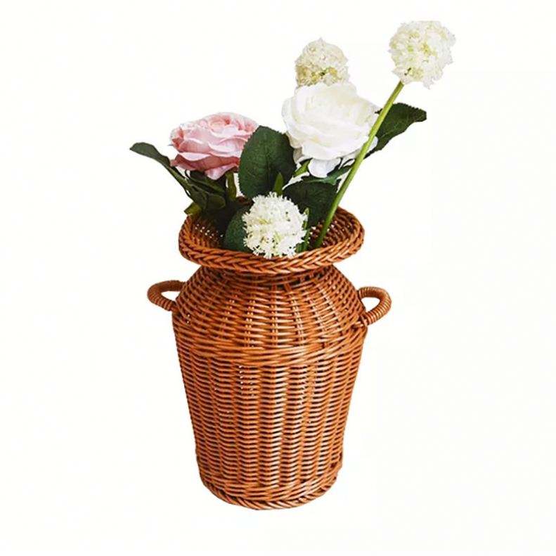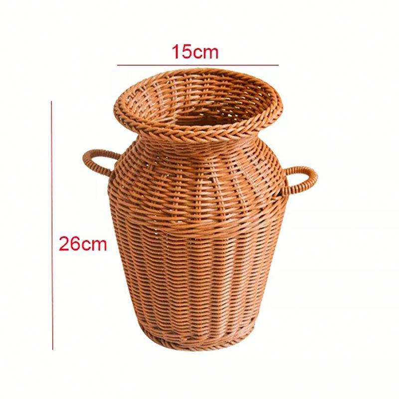 Plateau de rangement rond en rotin PE tressé à la main YILIN, vase décoratif pour la maison